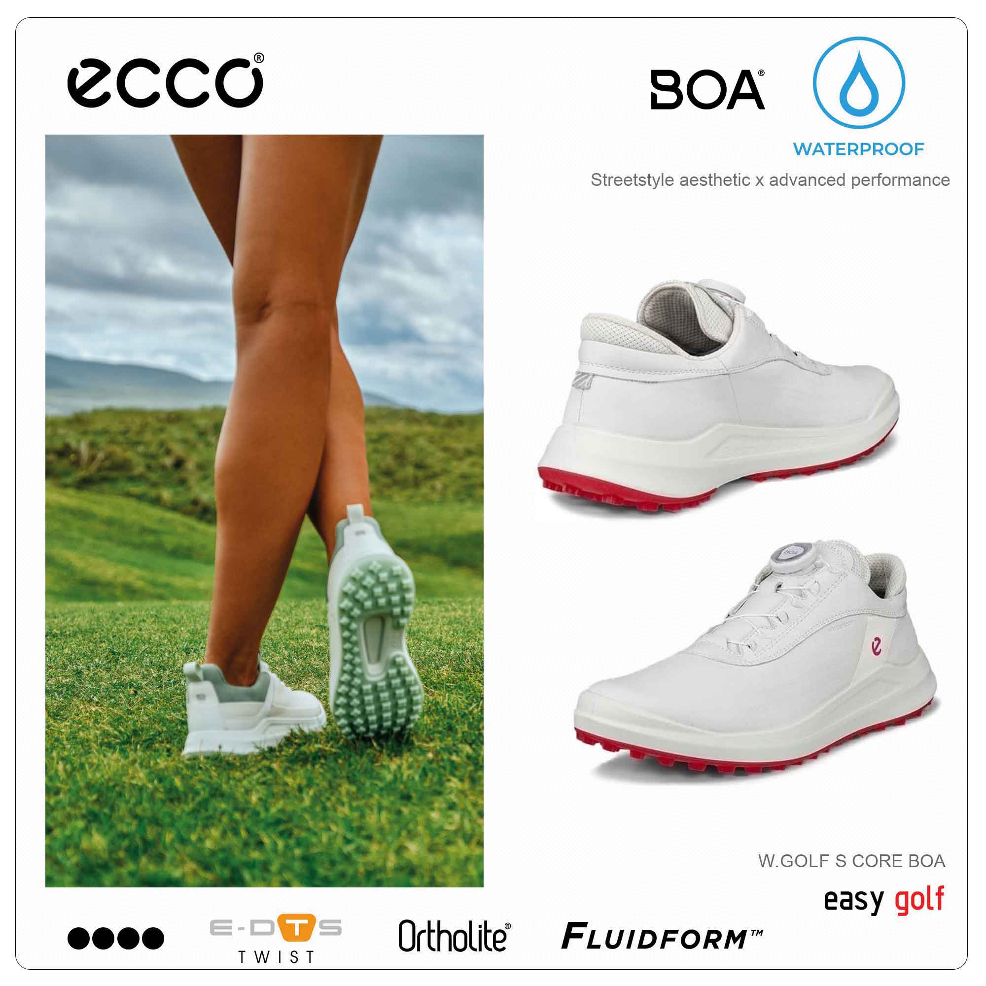 The ‘sneaker’ like shoes feature a fresh, premium mix of ECCO technologies, with different textures and perforations on the upper. The unique design of the E-DTS TWIST outsole offers multi-directional traction and has slightly larger cleats in high-abrasion areas. A lightweight sole provides cushioning and flexibility in the shoe, using innovative ECCO FLUIDFORM Direct Comfort Technology.